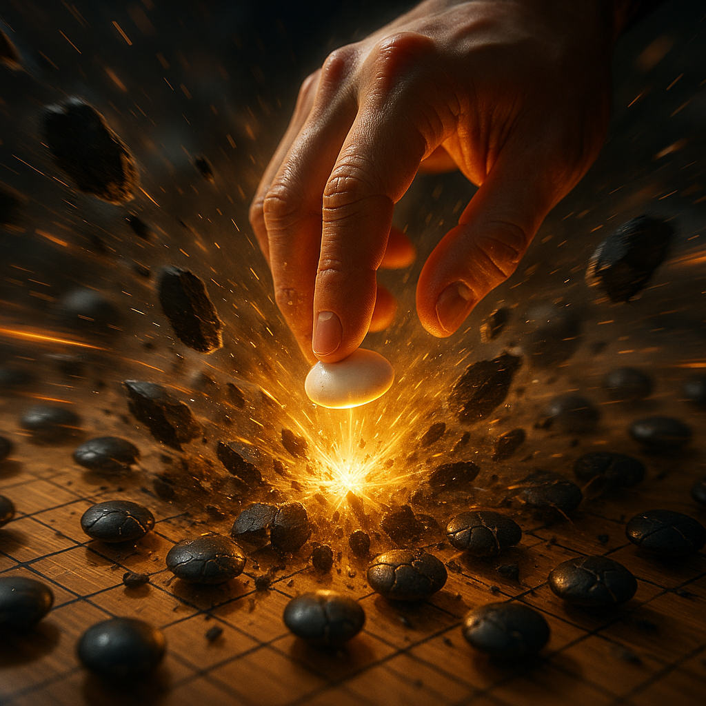 불확실성으로 가득한 미생의 상태를 극복하고 목표를 달성하기 위해서는, 끊임없는 노력과 전략적 유연성을 넘어 국면 전체를 뒤바꿀 수 있는 결정적인 돌파구가 필요합니다. 모든 과정이 응축되어 발현되는 이 창조적 결단이 바로 ‘신의 한 수’이며, 이를 통해 비로소 도달하는 궁극적 목표의 완성이 ‘완생’입니다.